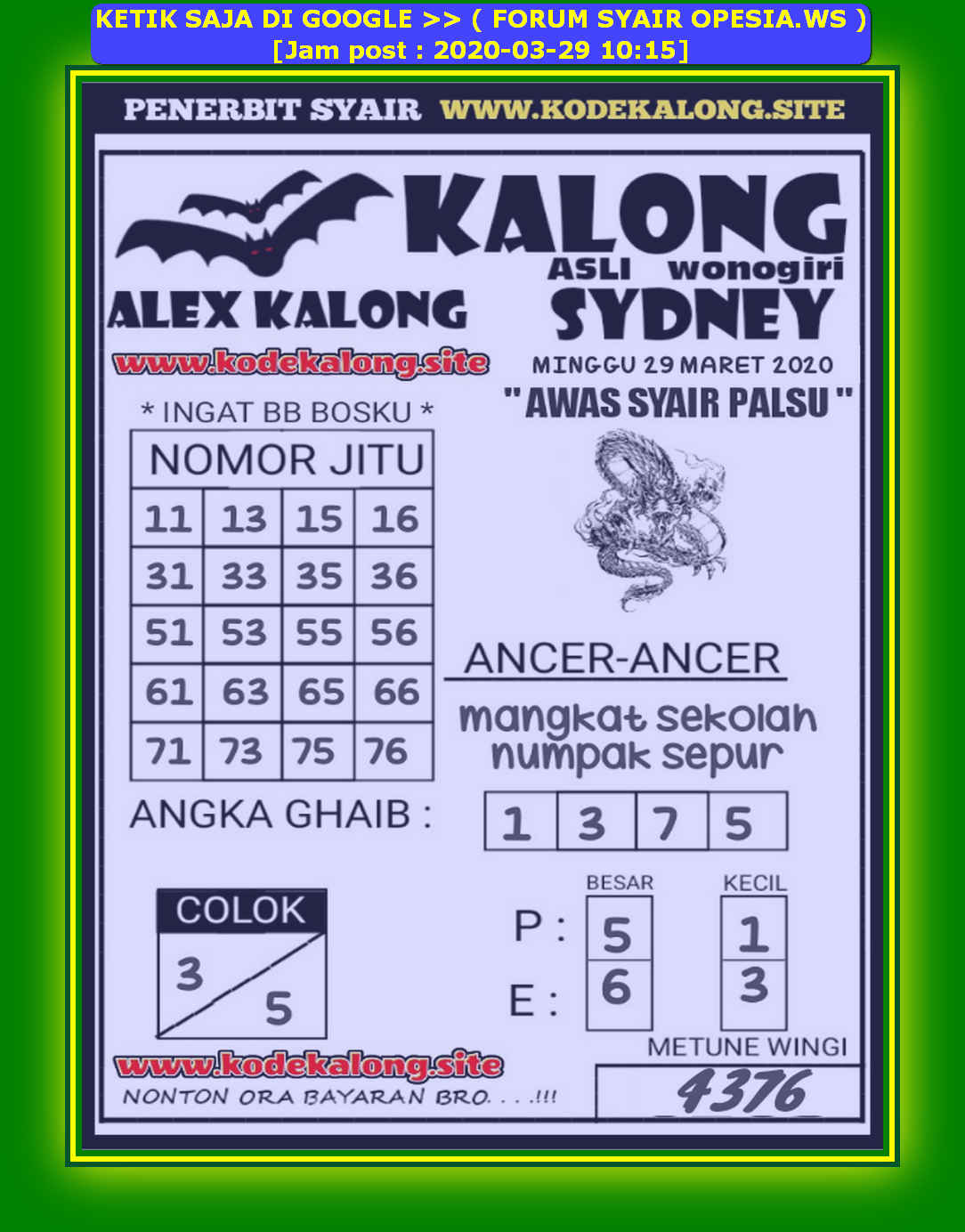 Prediksi Sydney Sabtu 29 Mei 2021 Berbagai prediksi togel disertai dengan gambar terlengkap hari ini dari situs prediksitogeljp. Dengan kiat sama-sama dari mbah semar dapat memperoleh jackpot dari bandot sgp. Demikianlah update syair hari ini 29-Mei-2021 syair di update secara berkala dan silakan di reload ulang agar bisa tampil semua syair di update penuh pukul 1100 wib.